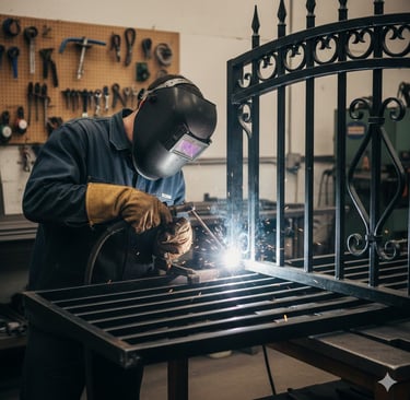 Fixing sagging gates, realigning hinges, repairing damaged pickets, and welding broken iron frames to restore the gate's original strength and look.